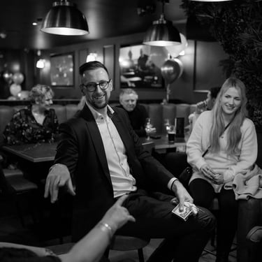 At Close-Up Chris & Co, we specialise in delivering unforgettable magical experiences for corporate events, private parties, and special occasions. Led by our top magician, Close-Up Chris, our team is dedicated to creating moments of wonder and amazement that leave a lasting impression. With years of experience performing at high-profile events across the UK, we pride ourselves on our ability to engage, entertain, and elevate any occasion. Whether it’s a corporate awards dinner, a product launch, or a Christmas party, we bring professionalism, creativity, and a touch of magic to every event we’re part of.