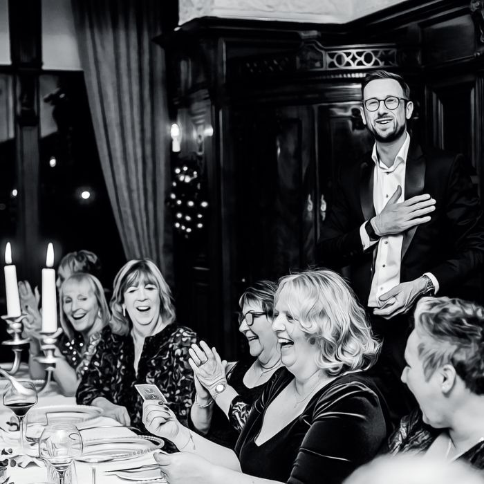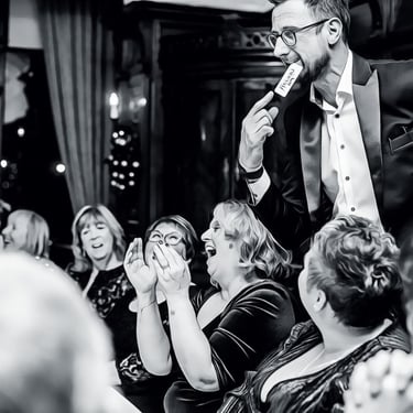 Why settle for a corporate magician wandering the room when you can have the world's first static close-up magic booth? Enter the Close-Up Corner, a genius creation by the enigmatic Close-Up Chris. This impressive 3m wide booth is a hub of magical brilliance, drawing your guests in like moths to a flame for an intimate and unforgettable show. It's also ideal post-meal for those who aren't keen on hitting the dance floor. This jaw dropping attraction is the perfect Christmas entertainment.